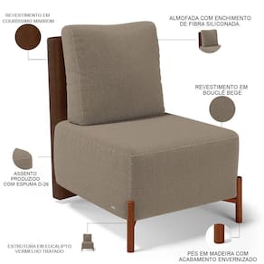 Poltrona Decorativa Sala Estar Living Pés Madeira Hungria L02 Couríssimo Marrom Bouclê Bege - Lyam