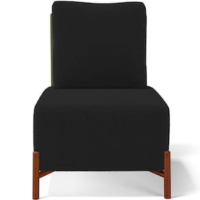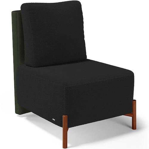 Revestimento do encosto em Couríssimo na cor Verde e do assento em Bouclê na cor Preto, de alta qualidade.