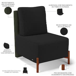 Poltrona Decorativa Sala Estar Living Pés Madeira Hungria L02 Couríssimo Verde Bouclê Preto - Lyam