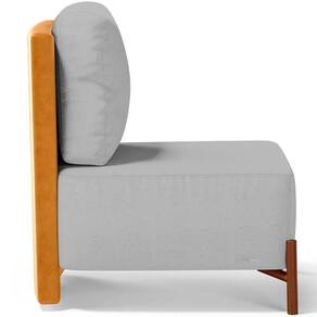 Poltrona Decorativa Sala Estar Living Pés Madeira Hungria L02 Couríssimo Whisky Linho Cinza - Lyam