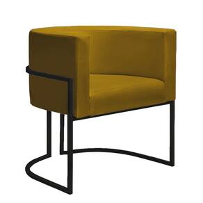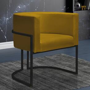 Poltrona Decorativa Sala Nayara Base Ferro Preto Suede - Mostarda
