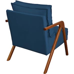 Ademais, os materiais em sua produção permitem uma qualidade excelente, tornando ela confortável por sua espuma D-23, bonita por seu acabamento em tecido suede e forte por seus pés e braças em madeira maciça ( suporta até 150 kg).