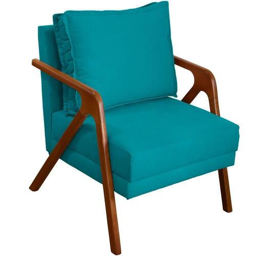Ademais, os materiais em sua produção permitem uma qualidade excelente, tornando ela confortável por sua espuma D-23, bonita por seu acabamento em tecido suede e forte por seus pés e braças em madeira maciça ( suporta até 150 kg).