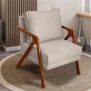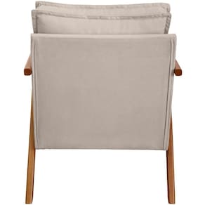 Ademais, os materiais em sua produção permitem uma qualidade excelente, tornando ela confortável por sua espuma D-23, bonita por seu acabamento em tecido suede e forte por seus pés e braças em madeira maciça ( suporta até 150 kg).