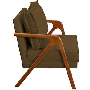 Ademais, os materiais em sua produção permitem uma qualidade excelente, tornando ela confortável por sua espuma D-23, bonita por seu acabamento em tecido suede e forte por seus pés e braças em madeira maciça ( suporta até 150 kg).