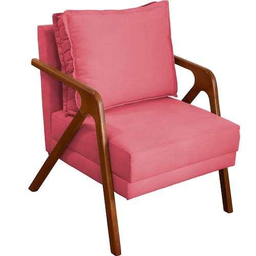 Ademais, os materiais em sua produção permitem uma qualidade excelente, tornando ela confortável por sua espuma D-23, bonita por seu acabamento em tecido suede e forte por seus pés e braças em madeira maciça ( suporta até 150 kg).