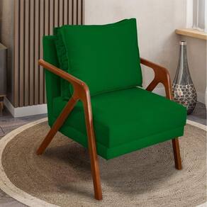 Ademais, os materiais em sua produção permitem uma qualidade excelente, tornando ela confortável por sua espuma D-23, bonita por seu acabamento em tecido suede e forte por seus pés e braças em madeira maciça ( suporta até 150 kg).
