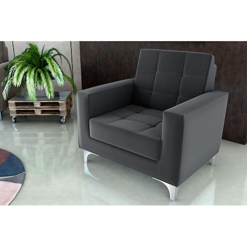 Poltrona Decorativa Thaina Veludo Cinza E425 - Matrix