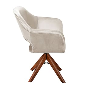 Poltrona Decorativa Zara Pé Giratório de Madeira Sala Recepção Bege Claro