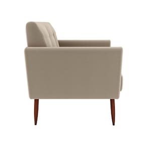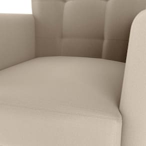 Produzida com estrutura reforçada em madeira de reflorestamento (eucalipto), espuma de diferentes densidades para cada parte da poltrona e pés em madeira maciça, oferece resistência e conforto para uso diário, suportando até 110 kg.