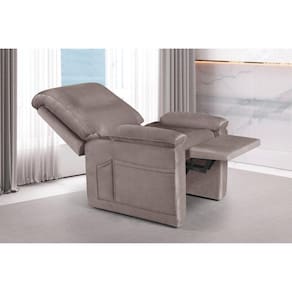 A Poltrona Reclinável do Papai Axé, apresenta um design sofisticado e acolhedor. Possui braços com almofada, encosto reclinável, com almofada preenchida com fibra siliconada, assento reclinável com espuma D28 e persintas elásticas de excelente qualidade que garantem conforto e resistência. Estrutura em madeira de eucalipto proveniente de reflorestamento ecologicamente correta, seca e imunizada. Pés de plástico. Possui bolso lateral porta objetos para proporcionar total praticidade. Poltrona confortável e moderna para desfrutar momentos de descanso. Acompanha Almofadas extras: Não Acompanha Puff: Não Almofada do assento: Não Possui Almofada do encosto: Não Possui Altura do assento até o chão: 46 Altura do Encosto: 68 Ambiente Principal: Sala de Estar Cor: Cinza Cor do Produto: Cinza Design Assinado: Não Enchimento do Braço: Espuma D-28 Encosto para a Cabeça: Não Estampado: Não Extensível: Sim Itens Inclusos: 1 Poltrona Material do Braço: Espuma Modelo de Poltrona: Reclinável Necessita Montagem: Não Origem do Produto: Nacional Peso: 33 kg Possui Percintas Elásticas: Sim Possui Pés: Não Profundidade quando extendido: 114 cm Recomendações de Uso, Manutenção e Limpeza: Remova o pó com uma flanela branca seca. Para situações que demandem limpeza mais profunda, utilize uma flanela branca levemente umedecida em uma solução com água e sabão neutro, retire o sabão com uma flanela levemente umedecida com água. Em seguida, utilize uma flanela seca.Cuidados gerais:• Não borrifar qualquer líquido diretamente no produto, aplicar sempre na flanela • Não utilizar produtos abrasivos como esponja de aço, sapólio, lixa, palha de aço, produtos ácidos ou alcalinos a base de amoníaco e acetona.• Não expor o produto a intempéries, umidade, maresia, luz solar ou luz artificial intensa.• Ao apoiar objetos sobre a superfície do produto, utilize feltro nas bases.• Proteger a superfície de objetos úmidos, quentes, pontiagudos, cortantes e que soltem tinta. Suporta Até (kg): 120 Tecido Predominante: Veludo Tipo de Assento: Regulável Tipo de Encosto: Regulável Tipo de Poltrona: Do Papai Ean: 7909903443750
