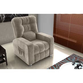 Poltrona Reclinável MX7 Azera com mecanismo de 2 estágios e 3 posições: Posição 1 (sentado), posição 2 (leitura) e posição 03 (descanso).Possui revisteiro lateral. Para dar mais flexibilidade e resistência, é utilizado percintas elásticas em sua estrutura, garantindo sua durabilidade, mas sem abrir mão do conforto. Proporciona maior conforto e revestimento, valorizando cada detalhe do produto. Acompanha Almofadas extras: Não Acompanha Puff: Não Almofada do assento: Fixa Almofada do encosto: Fixa Altura do assento até o chão: 45 cm Altura do Encosto: 49 cm Altura dos Pés: 5 cm Ambiente Principal: Sala de Estar Cor: Veludo Maserati Capuccino Cor do Produto: Veludo Maserati Capuccino Design Assinado: Não Enchimento do Assento: Espuma D-23 Enchimento do Braço: Espuma D-23 Enchimento do Encosto: Fibra Siliconada Encosto para a Cabeça: Sim Estampado: Não Extensível: Não Firmeza do Assento: Macio Itens Inclusos: 1 Poltrona do Papai Reclinável e Manual de Instruções Material do Braço: Veludo Material dos Pés: Madeira/Alumínio Modelo de Poltrona: Reclinável Necessita Montagem: Não Origem do Produto: Nacional Peso: 39,4 kg Possui Percintas Elásticas: Sim Possui Pés: 04 Possui Rodízio: Não Profundidade quando extendido: cm Recomendações de Uso, Manutenção e Limpeza: Para maior durabilidade, recomendamos que a limpeza dos estofados com revestimento em tecido, seja feito com aspirador de pó em baixa rotação ou escova com cerdas macias para a eliminação de poeira. Não utilizar produtos de limpeza. Suporta Até (kg): 100 kg Tecido Predominante: Veludo Tipo de Assento: Fixo Tipo de Encosto: Regulável Tipo de Espuma do Assento: Espuma Convencional Tipo de Poltrona: Do Papai