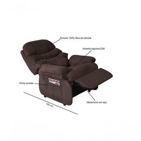Quem nunca sonhou em ter um móvel grandão desse para assistir aos programas de preferidos? Agora chegou a sua hora de fazer isso se tornar realidade com a Poltrona Reclinável Barão! Extremamente confortável, é ideal para proporcionar momentos mais aconchegantes a você e aos seus convidados. Tem o revestimento em Suede, tecido macio e de textura agradável, e o enchimento fofinho do encosto é fibra 100% siliconada, e o assento é feito de espuma e percintas elásticas e possui porta revista lateral. Versátil, ela é reclinável, podendo ser usada em vários ambientes.