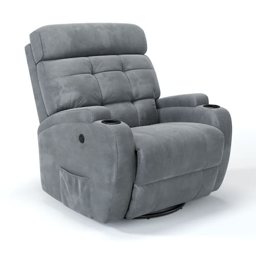 Glider Elétrico / reclina por motor - Reclinável. Mecanismo Giratório. Possui balanço. Ações giratórias e de balanço são feitas de forma manual com o corpo.