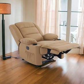 Poltrona do Papai Reclinavel Elétrica Corino Premium Caramelo - Bege