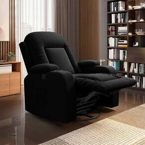 Poltrona Do Papai Reclinável Giratória E Balanço Sala De Cinema Crihs Manual Glider Veludo Preto G23 - Gran Belo