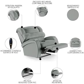 Madeira de EucaliptoImagine transformar sua Sala De Estar em um espaço de entretenimento de última geração com a Poltrona do Papai Reclinável Kalie Controle Power Elétrico FH9 PU Cinza, da Mpozenato!