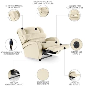 Inove a sua Sala De Estar com a Poltrona do Papai Reclinável Kalie Controle Power Elétrico FH9 PU Bege, da Mpozenato em um espaço de entretenimento de última geração!