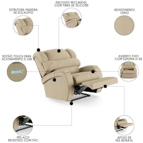 Hora de deixar a sua Sala De Estar mais moderna e transformar em um espaço de entretenimento de última geração com a Poltrona do Papai Reclinável Kalie Power Touch FH9 Linho Bege, da Mpozenato!