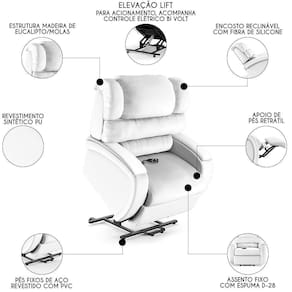 A Poltrona do Papai Reclinável Kalie Elevação Lift Elétrico FH9 PU Branco, da Mpozenato é uma peça de mobiliário que redefine o conforto e a acessibilidade na sua Sala De Estar.