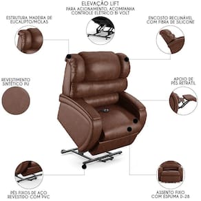 A Poltrona do Papai Reclinável Kalie Elevação Lift Elétrico FH9 PU Marrom Brilho, da Mpozenato é uma peça de mobiliário que redefine o conforto e a acessibilidade na sua Sala De Estar.