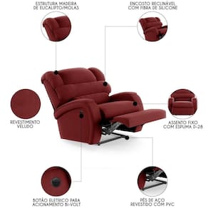 Madeira de EucaliptoTransforme sua Sala De Estar em um espaço de entretenimento de última geração com a Poltrona do Papai Reclinável Kalie Power Elétrica FH9 Veludo Vermelho, da Mpozenato!