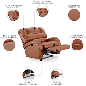 Hora de deixar a sua Sala De Estar mais moderna e transformar em um espaço de entretenimento de última geração com a Poltrona do Papai Reclinável Kalie Power Touch FH9 PU Caramelo Brilho, da Mpozenato!