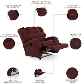 Poltrona Do Papai Reclinável Kalie Power Touch Usb Fh9 Veludo Vinho - Mpozenato