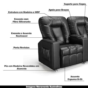 Poltrona Do Papai Reclinável Manual 2 Lugares Sala De Cinema Romeo F05 Facto Preto - Lyam Decor