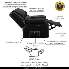 - Indicado para uso residencial, sua limpeza deve ser feita com pano umedecido em água limpa, sem esfregar, não utilizar produtos abrasivos, desengordurantes, álcool ou solvente. Nunca sentar nos braços ou encosto do produto.