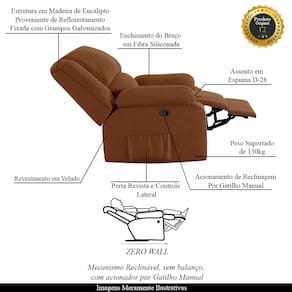 - Indicado para uso residencial, sua limpeza deve ser feita com pano umedecido em água limpa, sem esfregar, não utilizar produtos abrasivos, desengordurantes, álcool ou solvente. Nunca sentar nos braços ou encosto do produto.