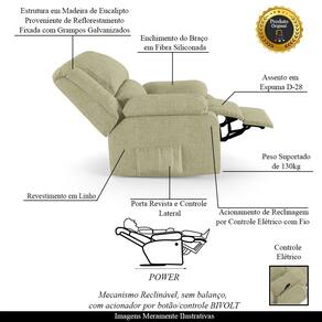 Diferenciais: Apoio de pés retrátil, Acompanha controle para acionamento e bolso lateral para revistas e livros