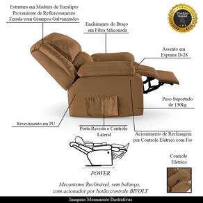 Diferenciais: Apoio de pés retrátil, Acompanha controle para acionamento e bolso lateral para revistas e livros