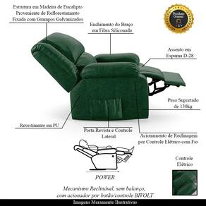 Diferenciais: Apoio de pés retrátil, Acompanha controle para acionamento e bolso lateral para revistas e livros