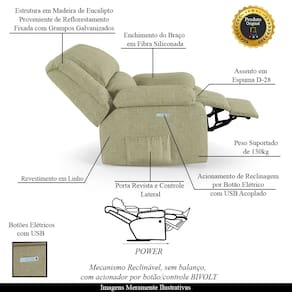 Que tal criar seu próprio home cinema? Aqui, vamos mostrar como você pode montar o seu! Com o local adequado, alguns itens decorativos e uma poltrona ideal, você garantirá um espaço confortável e imersivo. O primeiro passo é investir em equipamentos de alta qualidade! Olha só que lindeza a nossa Poltrona do Papai Reclinável Melim. Ela foi projetada para proporcionar máximo conforto e funcionalidade, esta poltrona é a escolha ideal para quem busca relaxamento, estilo e uma experiência de cinema privada. A facilidade de ajuste com o botão elétrico permite que você encontre a posição perfeita com o toque de um botão com LED, pensado para proporcionar uma experiência imersiva sem igual. Com capacidade para suportar até 130 kg, oferecendo segurança e estabilidade ao consumidor. O revestimento em Linho oferece um toque de sofisticação e conforto, enquanto a estrutura em Madeira de Lei Eucalipto com Controle de Umidade, Proveniente de Reflorestamento, Fixa com Grampos Galvanizados garante resistência e durabilidade. O assento foi preenchido com fibra siliconada com espuma D-28, respectivamente, para um conforto adicional. O assento (fixo) e o apoio de Pés Retrátil proporcionam um apoio perfeito para suas pernas, aumentando o conforto. O encosto reclinável, possibilita ajustá- lo para a posição ideal de relaxamento. Já os pés fixos foram feitos em aço revestido com plástico, adicionando um toque de elegância ao produto. E tem mais!! Ela contém Bolso lateral para revistas e controle nas braças perfeito para armazenar livros e outros objetos, mantendo tudo ao seu alcance. Com um design moderno e prático, esta poltrona se tornará o destaque da sua sala de estar. Afinal, sua casa merece a Poltrona do Papai Reclinável Melim Elétrica LED. Adquira a sua agora mesmo e transforme sua sala de estar em um verdadeiro cinema!