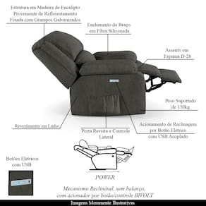 Poltrona do Papai Reclinável Melim Elétrica LED Linho FH1 - D`Rossi - Grafite