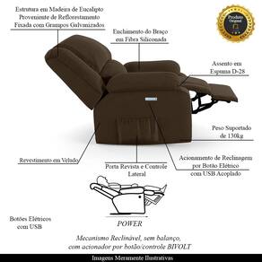 Poltrona do Papai Reclinável Melim Elétrica LED Veludo FH1 - D`Rossi - Marrom Escuro