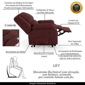 Diferenciais: Apoio de pés retrátil, acompanha controle para acionamento, elevação Lift, e bolso lateral para revistas e livros