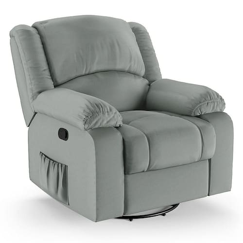 Diferenciais: Apoio de pés retrátil, poltrona giratória e balanço, acompanha controle para ativar massagem, gatilho lateral para acionar regulagem e bolso lateral para revistas e livros