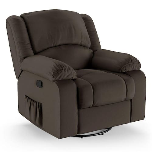 Diferenciais: Apoio de pés retrátil, poltrona giratória e balanço, acompanha controle para ativar massagem, gatilho lateral para acionar regulagem e bolso lateral para revistas e livros