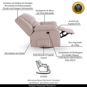 Poltrona do Papai Reclinável Melim Glider Giratória Massagem Veludo FH1 - D`Rossi - Rosê