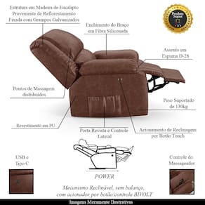 Poltrona do Papai Reclinável Melim Power Touch Massagem PU Marrom Brilho FH1 - D`Rossi