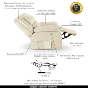 Que tal criar seu próprio home cinema? Aqui, vamos mostrar como você pode montar o seu! Com o local adequado, alguns itens decorativos e uma poltrona ideal, você garantirá um espaço confortável e imersivo. O primeiro passo é investir em equipamentos de alta qualidade! Olha só que lindeza a nossa Poltrona do Papai Reclinável Melim. Ela foi projetada para proporcionar máximo conforto e funcionalidade, esta poltrona é a escolha ideal para quem busca relaxamento, estilo e uma experiência de cinema privada. Com a conveniência do ajuste elétrico por meio de um Power botão touch Bivolt, é possível encontrar a posição ideal com um simples toque, proporcionando uma experiência imersiva única e sem comparações. Ela conta com capacidade para suportar até 130 kg, oferecendo segurança e estabilidade ao consumidor. O revestimento em Sintético PU oferece um toque de sofisticação e conforto, enquanto a estrutura em Madeira de Lei Eucalipto com Controle de Umidade, Proveniente de Reflorestamento, Fixa com Grampos Galvanizados garante resistência e durabilidade. O braço Braço foi preenchido em Fibra Siliconada e assento/encosto foi preenchido com espuma D-28, respectivamente, para um conforto adicional. O assento (fixo) e o apoio de Pés Retrátil proporcionam um apoio perfeito para suas pernas, aumentando o conforto. O encosto reclinável, possibilita ajustá- lo para a posição ideal de relaxamento. Já os pés fixos foram feitos em aço revestido com plástico, adicionando um toque de elegância ao produto. E tem mais!! Ela contém Bolso lateral para revistas e controle nas braças perfeito para armazenar livros e outros objetos, mantendo tudo ao seu alcance. Com um design moderno e prático, esta poltrona se tornará o destaque da sua sala de estar. Afinal, sua casa merece a Poltrona do Papai Reclinável Melim Power Touch. Adquira a sua agora mesmo e transforme sua sala de estar em um verdadeiro cinema!