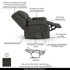 Que tal criar seu próprio home cinema? Aqui, vamos mostrar como você pode montar o seu! Com o local adequado, alguns itens decorativos e uma poltrona ideal, você garantirá um espaço confortável e imersivo. O primeiro passo é investir em equipamentos de alta qualidade! Olha só que lindeza a nossa Poltrona do Papai Reclinável Melim. Ela foi projetada para proporcionar máximo conforto e funcionalidade, esta poltrona é a escolha ideal para quem busca relaxamento, estilo e uma experiência de cinema privada. Com a conveniência do ajuste elétrico por meio de um Power botão touch Bivolt em uma das Braças, é possível encontrar a posição ideal com um simples toque, proporcionando uma experiência imersiva única e sem comparações. Contém também uma saída USB, que permite que você carregue seu celular enquanto relaxa. Ela conta com capacidade para suportar até 130 kg, oferecendo segurança e estabilidade ao consumidor. O revestimento em Linho Grafite oferece um toque de sofisticação e conforto, enquanto a estrutura em Madeira de Lei Eucalipto com Controle de Umidade, Proveniente de Reflorestamento, Fixa com Grampos Galvanizados garante resistência e durabilidade. O braço Braço foi preenchido em Fibra Siliconada e assento/encosto foi preenchido com espuma D-28, respectivamente, para um conforto adicional. O assento (fixo) e o apoio de Pés Retrátil proporcionam um apoio perfeito para suas pernas, aumentando o conforto. O encosto reclinável, possibilita ajustá- lo para a posição ideal de relaxamento. Já os pés fixos foram feitos em aço revestido com plástico, adicionando um toque de elegância ao produto. E tem mais!! Ela contém Bolso lateral para revistas e controle nas braças perfeito para armazenar livros e outros objetos, mantendo tudo ao seu alcance. Com um design moderno e prático, esta poltrona se tornará o destaque da sua sala de estar. Afinal, sua casa merece a Poltrona do Poltrona do Papai Reclinável Melim Power Touch USB. Adquira a sua agora mesmo e transforme sua sala de estar em um verdadeiro cinema!