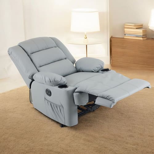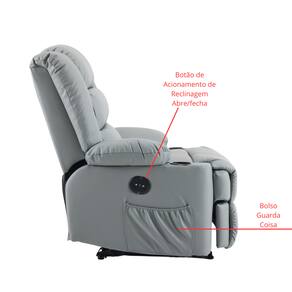 Poltrona Do Papai Reclinável Motorizada e Entrada USB Corino Premium Cinza Porto