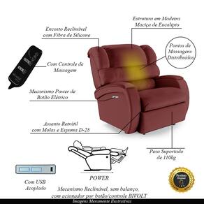 Diferenciais: Poltrona Elétrica com Massagem, Apoio de pés retrátil, botão LED para acionamento