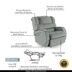 Que tal criar seu próprio home cinema? Aqui, vamos mostrar como você pode montar o seu! Com o local adequado, alguns itens decorativos e uma poltrona ideal, você garantirá um espaço confortável e imersivo. O primeiro passo é investir em equipamentos de alta qualidade! Olha só que lindeza a nossa Poltrona Reclinável do Papai Napoli. Ela foi projetada para proporcionar máximo conforto e funcionalidade, esta poltrona é a escolha ideal para quem busca relaxamento, estilo e uma experiência de cinema privada. Com capacidade para suportar até 110 kg oferecendo segurança e estabilidade ao consumidor. O revestimento em PU oferece um toque de sofisticação e conforto, enquanto a estrutura em Madeira Maciça de Eucalipto garante resistência e durabilidade. O sistema de abertura fácil permite ajustar a poltrona sem esforço: basta acionar o mecanismo power com controle de acionamento bivolt, onde possibilita que você encontre a posição perfeita com um simples toque de um botão LED. E tem mais, ela ainda conta com entrada USB e tipo C ideal para carregar seus eletrônicos enquanto descansa. O encosto e o assento são sustentados por fibra siliconada e espuma D-28, no assento também possui Molas respectivamente para um conforto adicional. O assento (fixo) e o apoio de Pés Retrátil proporcionam um apoio perfeito para suas pernas, aumentando o conforto. O encosto reclinável, possibilita ajustá- lo para a posição ideal de relaxamento. Já os pés (fixos) foram feitos em Aço Revestido com Plástico, adicionando um toque de elegância ao produto. Com um design moderno e prático, esta poltrona se tornará o destaque da sua sala de estar. Afinal, sua casa merece a Poltrona do Papai Reclinável Napoli Elétrica Botão LED. Adquira a sua agora mesmo e transforme sua sala de estar em um verdadeiro cinema!