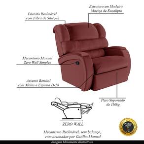 Que tal criar seu próprio home cinema? Aqui, vamos mostrar como você pode montar o seu! Com o local adequado, alguns itens decorativos e uma poltrona ideal, você garantirá um espaço confortável e imersivo. O primeiro passo é investir em equipamentos de alta qualidade! Olha só que lindeza a nossa Poltrona do Papai Reclinável Napoli. Ela foi projetada para proporcionar máximo conforto e funcionalidade, esta poltrona é a escolha ideal para quem busca relaxamento, estilo e uma experiência de cinema privada. A fusão de um encosto reclinável com sistema zero wall, que se move para frente durante o reclínio, eliminando a necessidade de espaço adicional para afastamento de paredes, junto com um apoio para os pés ativado manualmente, oferece uma experiência completa de relaxamento, ocupando pouco espaço na área traseira da poltrona. O mecanismo da poltrona em aço é feito manualmente, utilizando um gatilho localizado na lateral da poltrona. Ao puxar ou pressionar esse gatilho, o usuário pode reclinar o encosto ou levantar o apoio para os pés, ajustando a poltrona à posição desejada. Ela conta com capacidade para suportar até 110 kg, oferecendo segurança e estabilidade ao consumidor. O revestimento em PU Vermelho oferece um toque de sofisticação e conforto, enquanto a estrutura em madeira de eucalipto proveniente de reflorestamento garante resistência e durabilidade. O encosto foi preenchido com fibra siliconada. O assento foi preenchido com molas e espuma D-28, respectivamente, para um conforto adicional. O assento e o apoio de Pés Retrátil proporcionam um apoio perfeito para suas pernas, aumentando o conforto. Já os pés fixos foram feitos em aço revestido com plástico, adicionando um toque de elegância ao produto. Com um design moderno e prático, esta poltrona se tornará o destaque da sua sala de estar. Afinal, sua casa merece a Poltrona do Papai Reclinável Napoli Manual Gatilho. Adquira a sua agora mesmo e transforme sua sala de estar em um verdadeiro cinema!