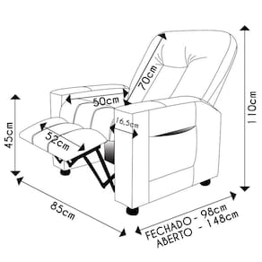 Com um mecanismo reclinável de dois estágios e três posições ajustáveis, ela permite que os usuários encontrem a postura ideal para sentar, ler ou descansar. A estrutura é feita de madeira de reflorestamento de eucalipto, uma escolha sustentável que de qualidade. O sistema de abertura intuitivo permite que você ajuste a poltrona com facilidade, colocando as mãos nas braças e flexionando o corpo para trás e as mãos para frente. O encosto e o assento são apoiados por percintas elásticas, conhecidas por sua resistência e capacidade de manter a forma ao longo do tempo, e são preenchidos com fibra siliconada e espuma D-26 Soft, respectivamente, para um conforto extra. Os braços da Poltrona Reclinável contêm enchimento em espuma D-20, proporcionando um apoio suave para os braços. Além disso, a poltrona possui um revisteiro lateral prático nas braças, pés de madeira revestidos em alumínio cromado que adicionam um toque de elegância e um revestimento que oferece uma textura suave ao toque. Com capacidade para suportar até 110kg, esta Poltrona Do Papai é uma adição luxuosa e prática para qualquer Sala De Estar.