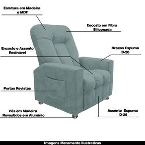 Que tal criar seu próprio home cinema? Aqui, vamos mostrar como você pode montar o seu! Com o local adequado, alguns itens decorativos e uma poltrona ideal, você garantirá um espaço confortável e imersivo. O primeiro passo é investir em equipamentos de alta qualidade! Olha só que lindeza a nossa Poltrona Reclinável do Papai Sora. Ela foi projetada para proporcionar máximo conforto e funcionalidade, esta poltrona é a escolha ideal para quem busca relaxamento, estilo e uma experiência de cinema privada. Seu mecanismo reclinável permite ajustar a poltrona conforme suas necessidades, independente, com 2 estágios e 3 posições ajustáveis, seja para assistir a um filme, ler um livro ou simplesmente descansar. Com capacidade para suportar até 110kg oferecendo segurança e estabilidade ao consumidor. O revestimento em Veludo Azul Claro oferece um toque de sofisticação e conforto, enquanto a estrutura em madeira de eucalipto garante resistência e durabilidade. O sistema de abertura fácil permite ajustar a poltrona sem esforço: basta colocar as mãos nos braços, inclinar o corpo para trás e empurrar as mãos para frente. O encosto e o assento são sustentados por percintas elásticas. Eles são preenchidos com fibra siliconada e espuma D-26 Soft, respectivamente, para um conforto adicional. Os Encosto e Assento da poltrona é reclinável e nos braços contêm enchimento em espuma D-20, proporcionando um apoio suave e confortável. O assento (fixo) e o apoio de Pés Retrátil proporcionam um apoio perfeito para suas pernas, aumentando o conforto. O encosto reclinável, possibilita ajustá- lo para a posição ideal de relaxamento. Já os pés (fixos) foram feitos em madeira e revestidos em alumínio cromado, adicionando um toque de elegância ao produto. E tem mais!! Ela contém um revisteiro lateral prático nas braças com um bolso prático para armazenar revistas e livros, mantendo tudo ao seu alcance. Com um design moderno e prático, esta poltrona se tornará o destaque da sua sala de estar. Afinal, sua casa merece a Poltrona Reclinável do Papai Sora. Adquira a sua agora mesmo e transforme sua sala de estar em um verdadeiro cinema!